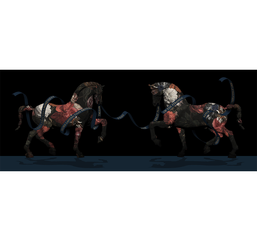 • Originalt trykk av Magnus Gjøen med tittelen "Not Without My Calvins" viser pillarer i ruiner med en stor røyksky, og calvin klein undertøy til tørk.