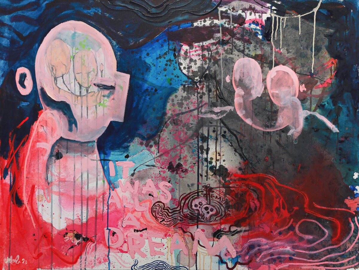 • "Holding On / Letting Go" er et originalt maleri på lerret av kunstner Ståle Gerhardsen.