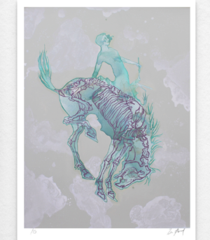 • Lea Alstads kunstverk Hestekrefter, er tydelig inspirert av anatomiske tegninger av hester, sammen med de organiske strekene i sterke farger.