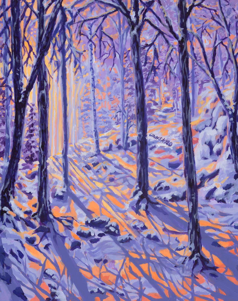 • Vandring i Urskog er et abstrakt og fargerikt kunsttrykk i begrenset opplag av kunstner Sebastian Slotte